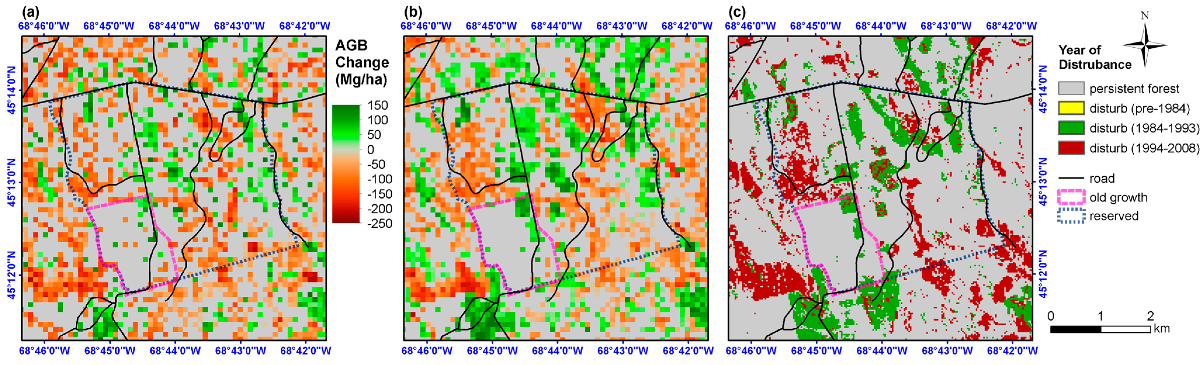 - Huang, W.; Sun, G.; Dubayah, R.; Cook, B.D.; Montesano, P.M.; Ni, W.; Zhang, Z. Mapping biomass change after forest disturbance: Applying lidar footprint-derived models at key map scales. Remote Sens. Environ. 2013, 134, 319–332. [Google Scholar] [CrossRef]