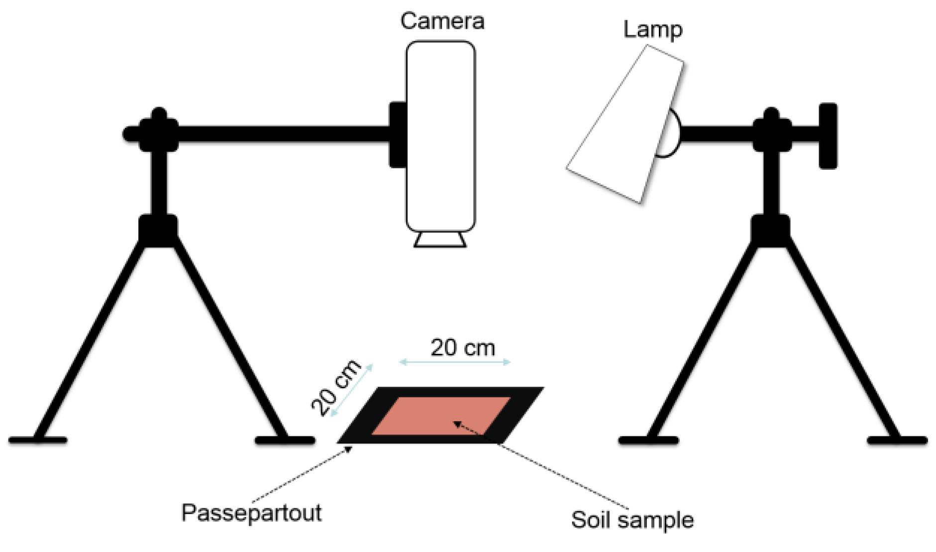 For the data collection, the camera was mounted on a single tripod (Figure 2). As an illumination source we used an ASD (Analytical Spectral Devices, Boulder, CO, USA) Pro-Lamp model (14.5 Volt, 50 Watt), which is also tripod-mountable for indoor laboratory diffuse reflectance measurements. The size of the calibrated reference panel (Zenith Polymer®) was 30 cm × 30 cm.