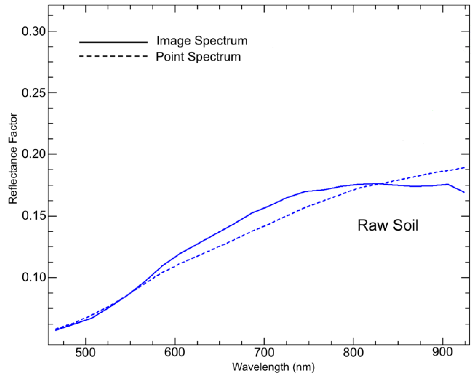 Imaging and non-imaging reflectance curves (UHD camera vs. ASD spectroradiometer) measured for raw soil samples.