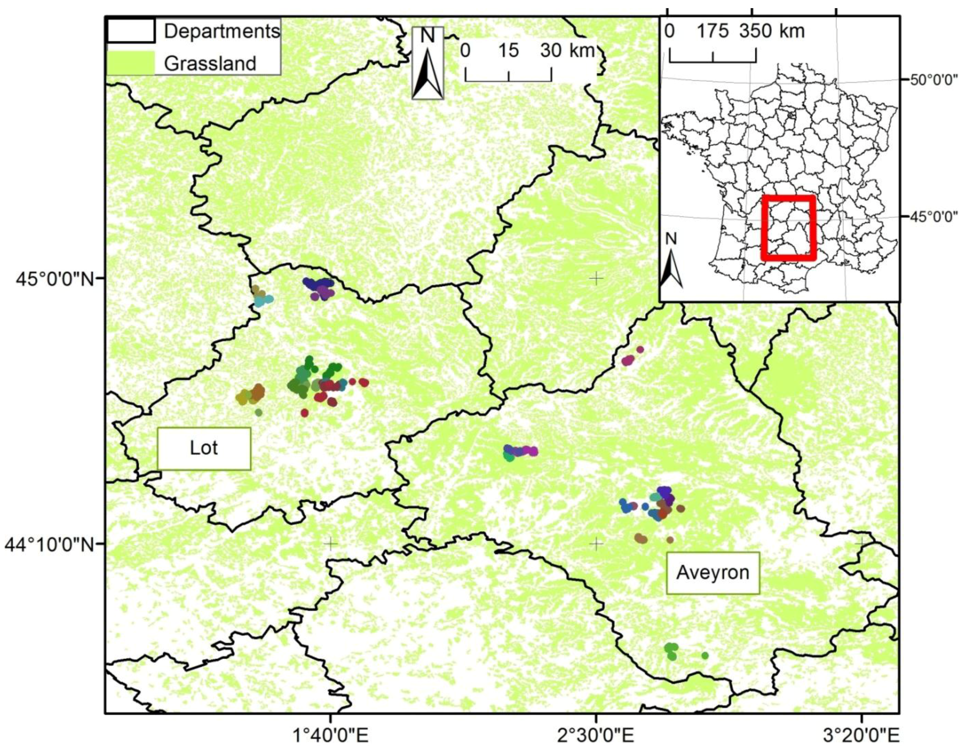 The study site was located in the Lot and Aveyron departments of southwestern France (