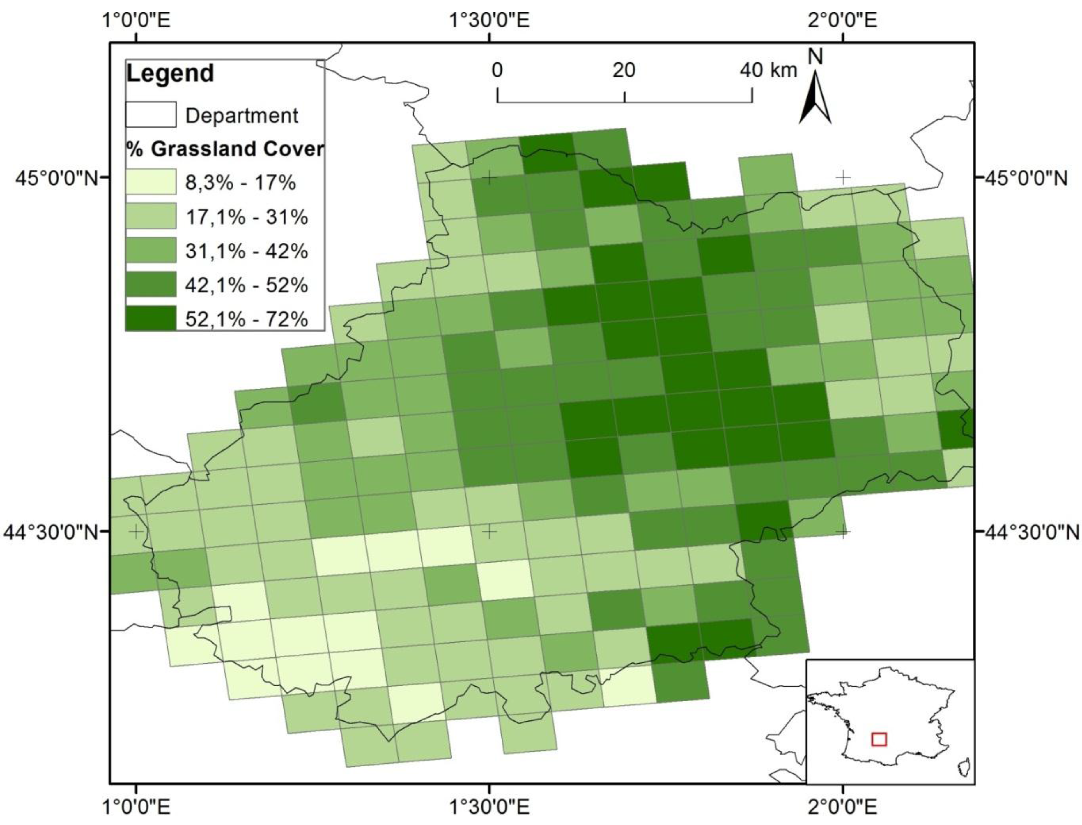 51] (90% in Aveyron and 66% in Lot). The period for direct comparison of the FPI was 2012–2014, beginning in February and ending (for each ESU) according to farmers’ practice and grassland production.