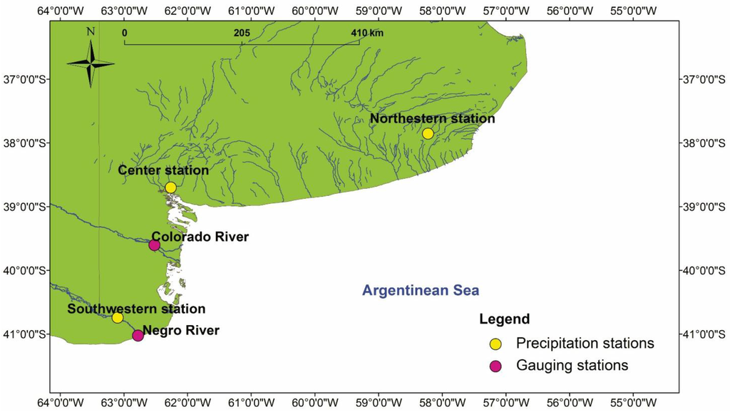 Air temperature, wind speed and direction, precipitations, and river discharges of Colorado and Negro rivers’ inter-annual variability had been analyzed with regards to El Niño Southern Oscillation phenomenon between 2002 and 2010 [68]. As expected, the only parameters which seem to have significant inter-annual variations and a linkage with ENSO events were the precipitations and the discharge of the rivers. Thus, these parameters were considered for this study.