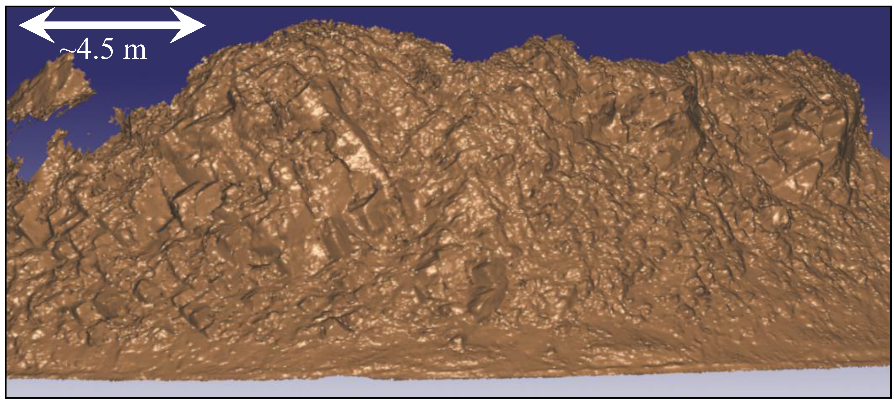 Results from an approximately 35 m section of exposed rock at Site A (0.05 m cell size surface model from 2013).