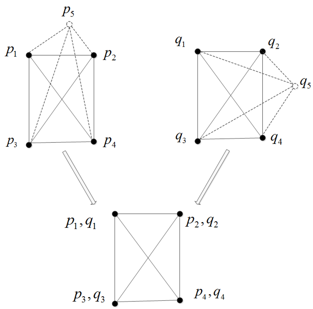 Geometry matching based on similar triangles. Based on the frequency that triangles match, we can easily get the corresponding points and conclude that and are noise or undetected points.