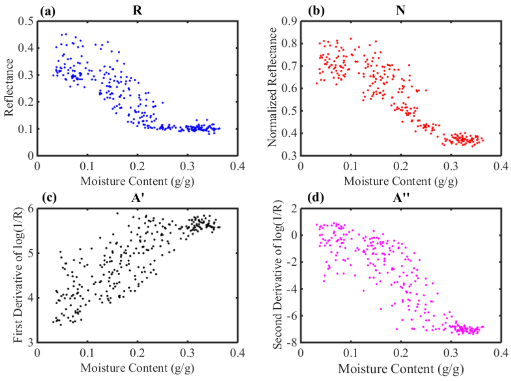 - Whiting, M.L.; Li, L.; Ustin, S.L. Predicting water content using gaussian model on soil spectra. Remote Sens. Environ. 2004, 89, 535–552. [Google Scholar] [CrossRef]