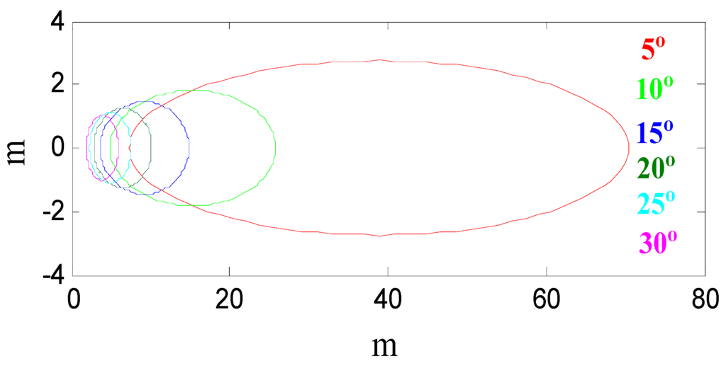 The First Fresnel zone for a typical 2 m antenna height with different elevation angles.