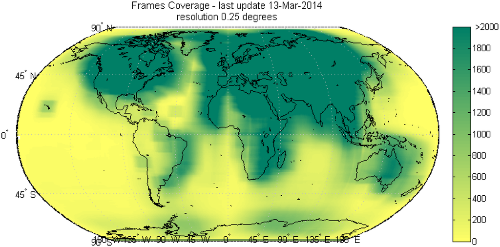 Map of the total number of available MERIS observations for the period July 2002–March 2012, at a spatial resolution of 0.25° × 0.25° [59].
