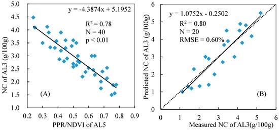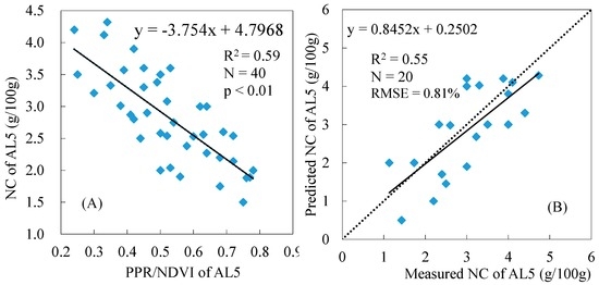 3.2. Estimation of Nitrogen Concentrations Using Spectral Indices
