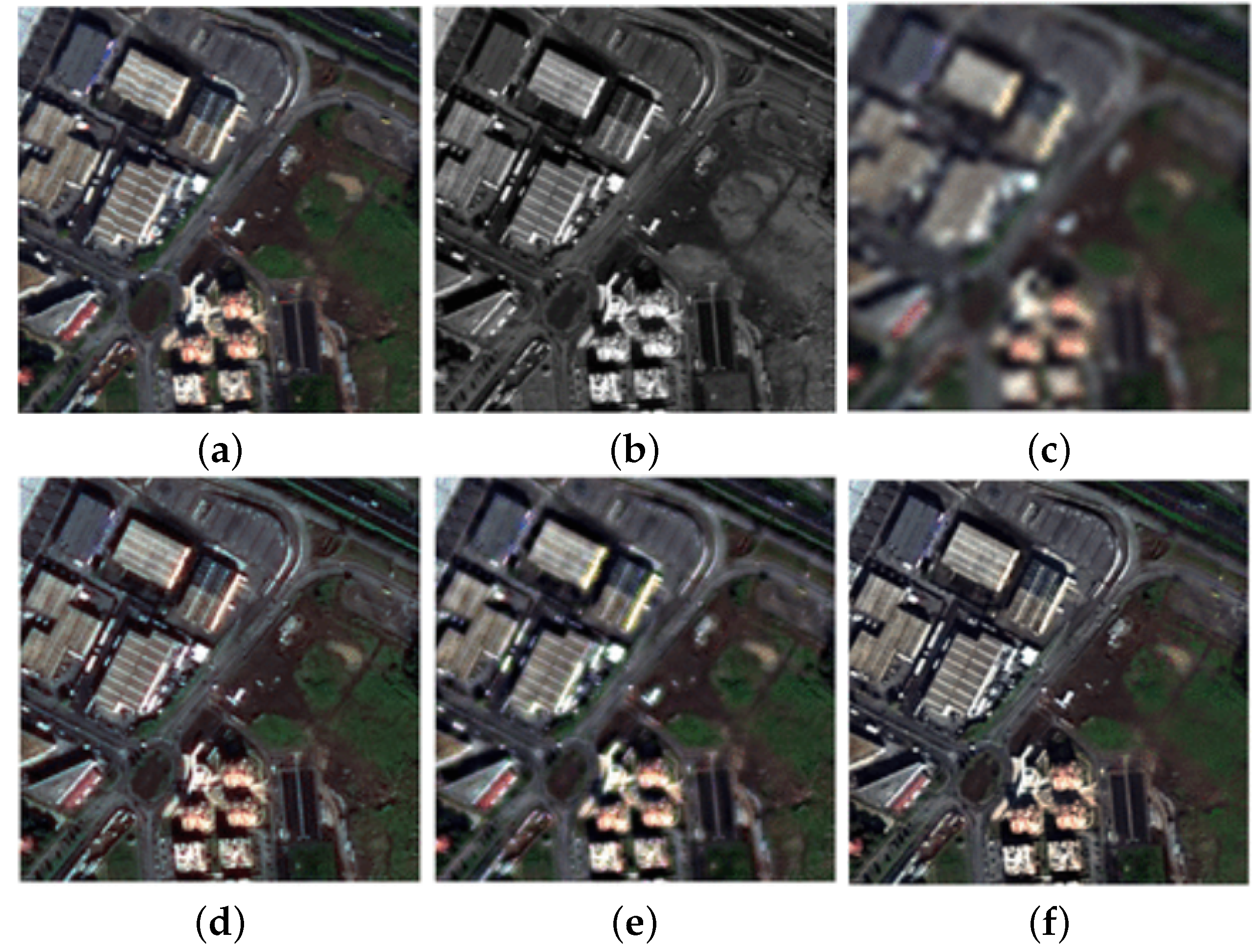 - Vivone, G.; Alparone, L.; Chanussot, J.; Dalla Mura, M.; Garzelli, A.; Restaino, R.; Licciardi, G.; Wald, L. A critical comparison among pan-sharpening algorithms. IEEE Trans. Geosci. Remote Sens. 2015, 53, 2565–2586. [Google Scholar] [CrossRef]