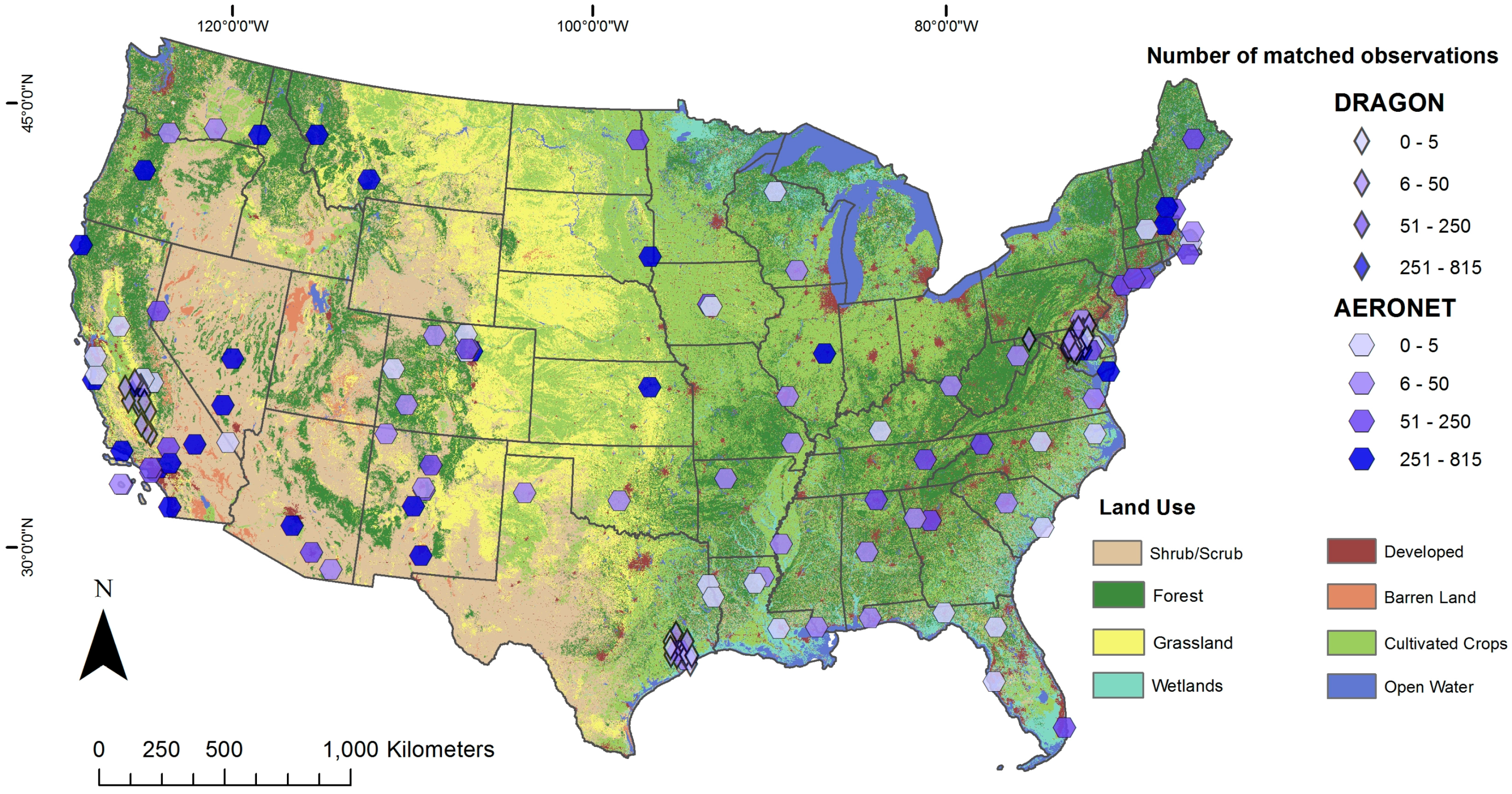 This work was partially supported by the NASA Applied Sciences Program (grant No. NNX11AI53G, PI: Liu). In addition, this publication was made possible by the AERONET principal investigators and their staff for establishing and maintaining the 193 sites used in this investigation. The original MODIS AOD, AERONET AOD, land use, and MODIS NDVI data used in this paper are available free through the links referenced in Section 2 of the paper. We have additionally made our processing and analysis code, gridded coverage estimates, and MODIS and AERONET collocations produced for this analysis available on GitHub (https://github.com/jhbelle/MODIS_C6_Evaluation_over_the_CONUS).