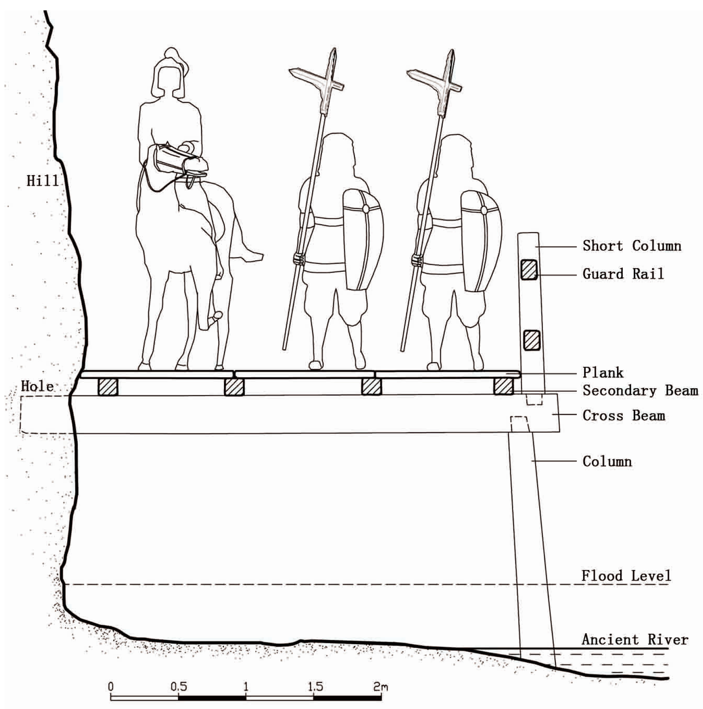 - Lan, Y. The form and transition of Chinese ancient plank road. Study Hist. Nat. Sci. 1992, 1, 68–76. [Google Scholar]