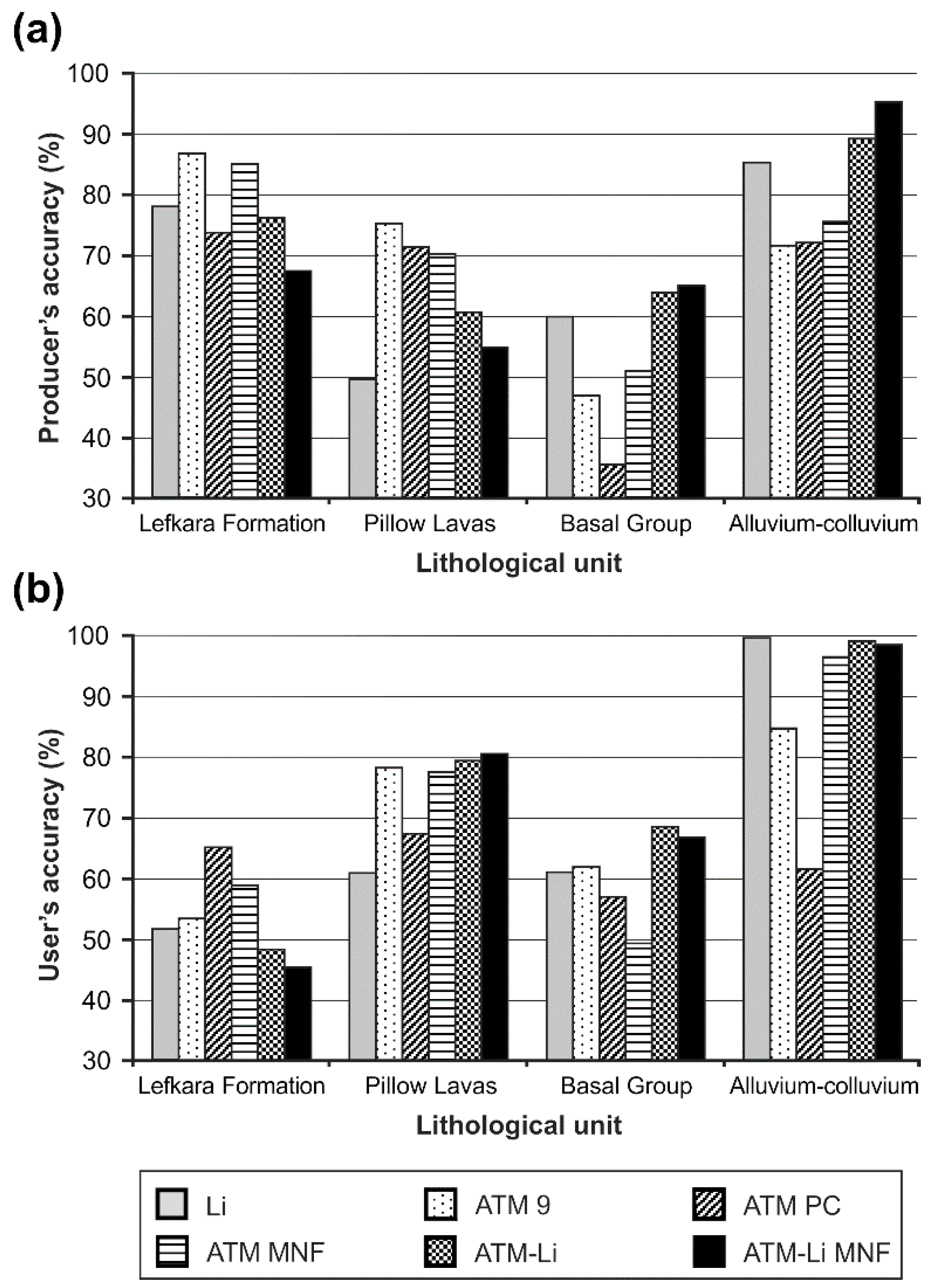 | ATM-Li MNF | First five Minimum Noise Fraction (MNF) bands derived from transformation of ATM-Li dataset c | |