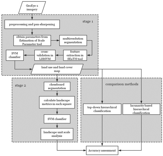 The whole network of classification is illustrated in Figure 3. Classification Stage 1 and Stage 2 are described in Section 3.1 and Section 3.2, respectively. Two comparison methods are outlined in Section 3.3 and Section 3.4, followed by accuracy assessment in Section 3.5.
