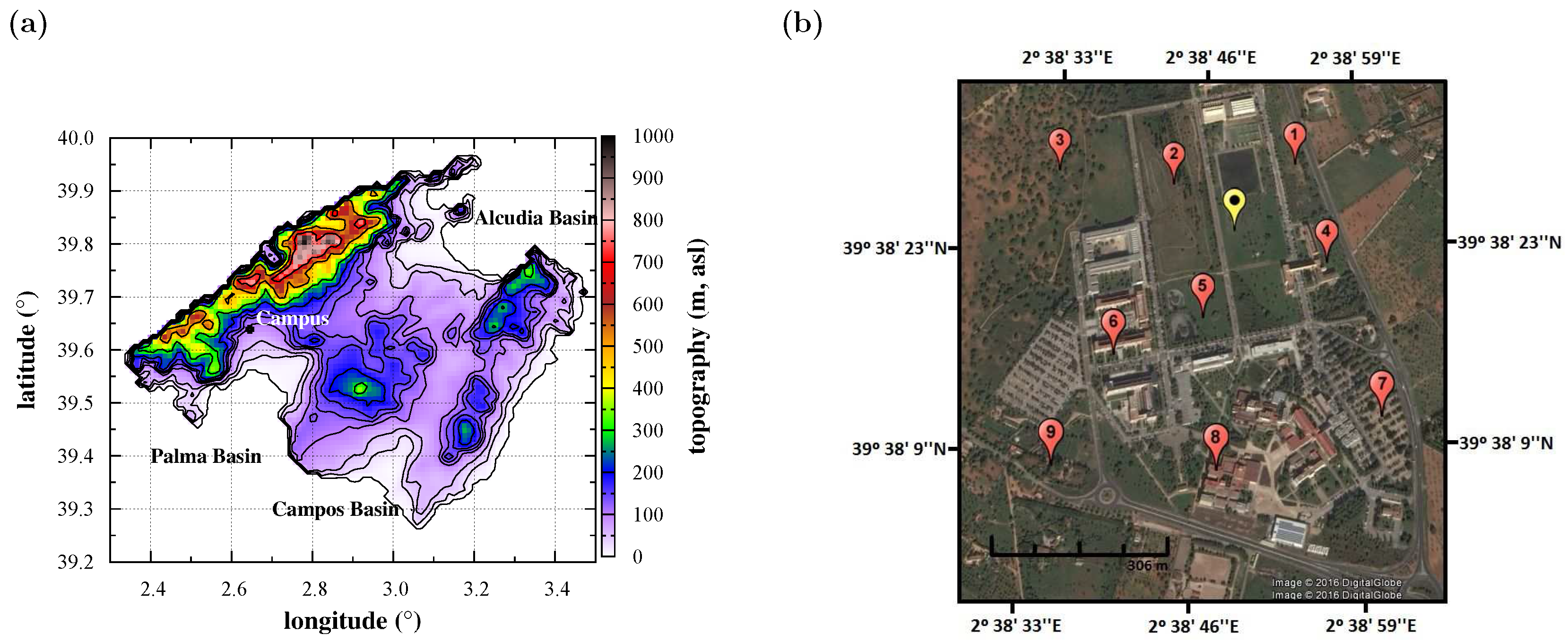 - Cuxart, J.; Jiménez, M.A.; Martínez, D. Nocturnal meso-beta basin and katabatic flowson a midlatitude island. Mon. Weather Rev. 2007, 135, 918–932. [Google Scholar] [CrossRef]