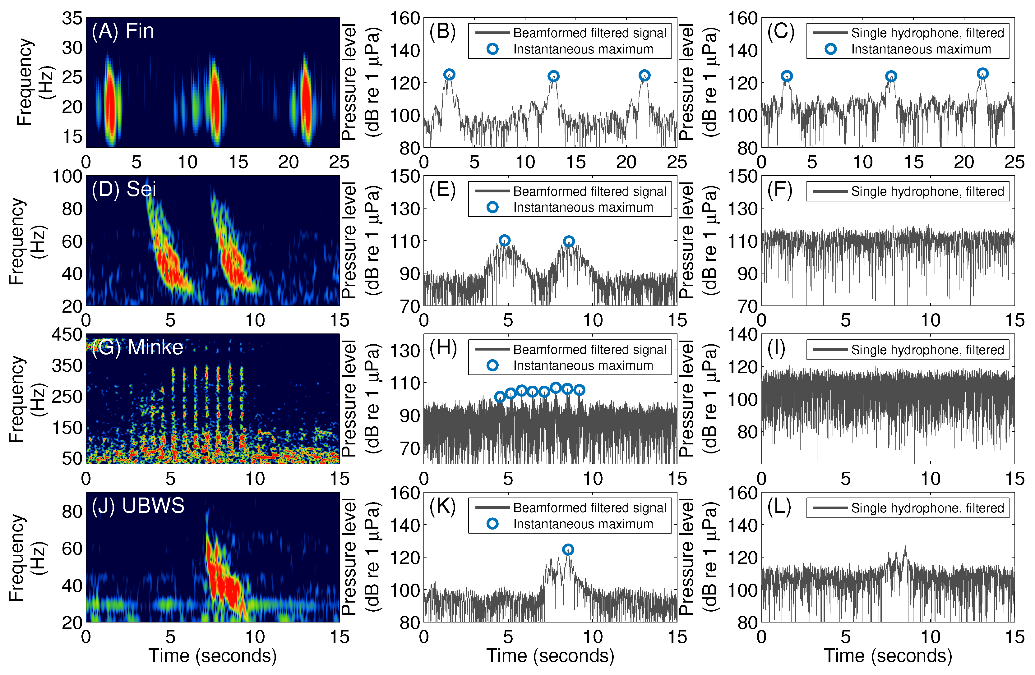3.5. Pulse Compression Gains of Vocalizations from Baleen Whale Species