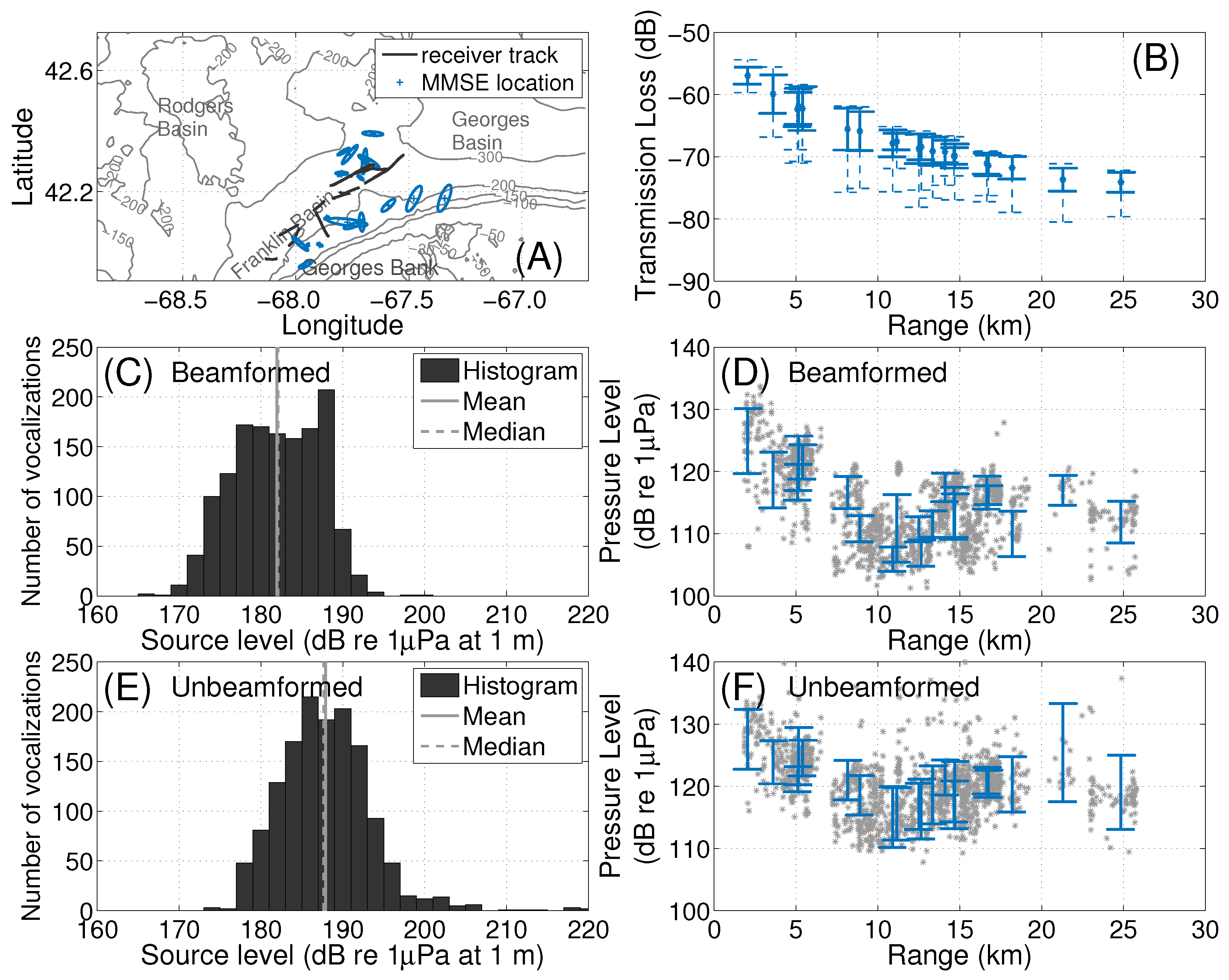 Chicago/Turabian StyleWang, Delin, Wei Huang, Heriberto Garcia, and Purnima Ratilal. 2016. "Vocalization Source Level Distributions and Pulse Compression Gains of Diverse Baleen Whale Species in the Gulf of Maine" Remote Sensing 8, no. 11: 881. https://doi.org/10.3390/rs8110881