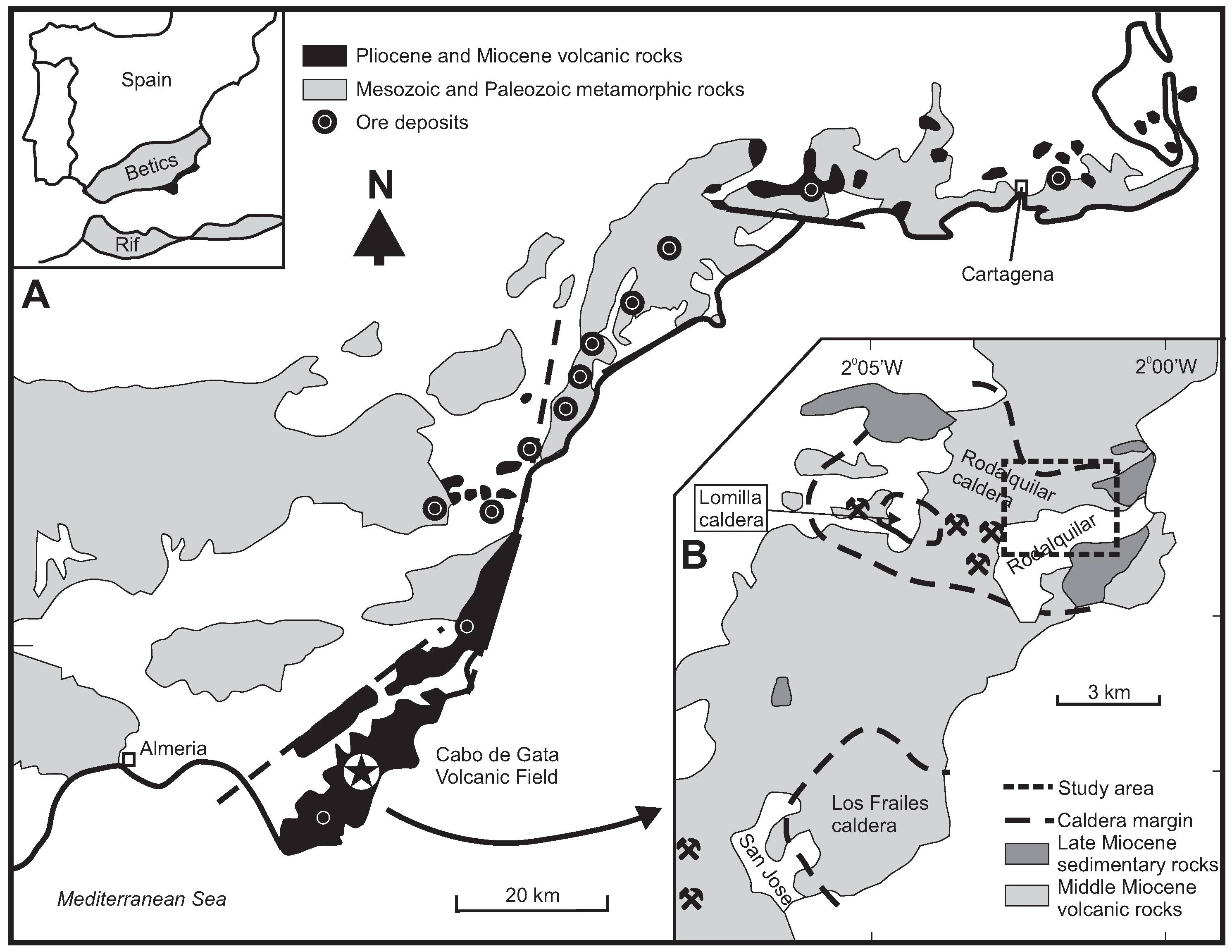 - Rytuba, J.J.; Arribas, A.; Cunningham, C.G.; McKee, E.H.; Podwysocki, M.H.; Smith, J.G.; Kelly, W.C. Mineralized and unmineralized calderas in Spain; Part II, Evolution of the Rodalquilar caldera complex and associated gold-alunite deposits. Miner. Depos. 1990, 25, S29–S35. [Google Scholar] [CrossRef]