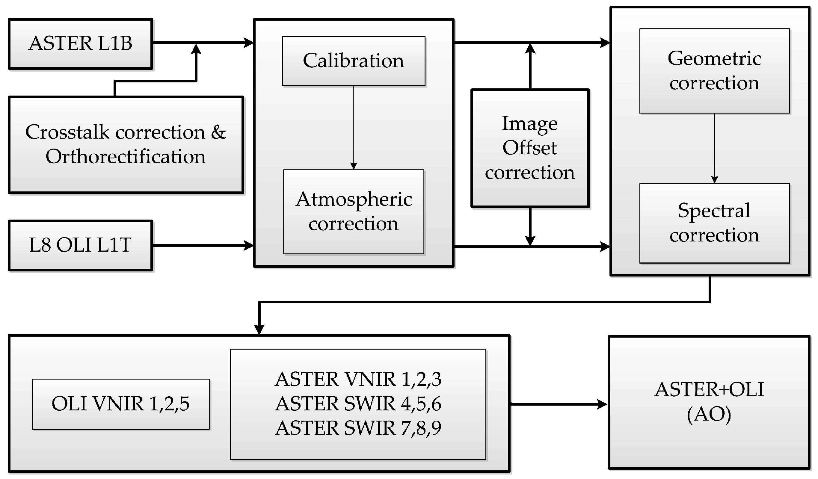 3.2. Integration of ASTER and L8 OLI Data