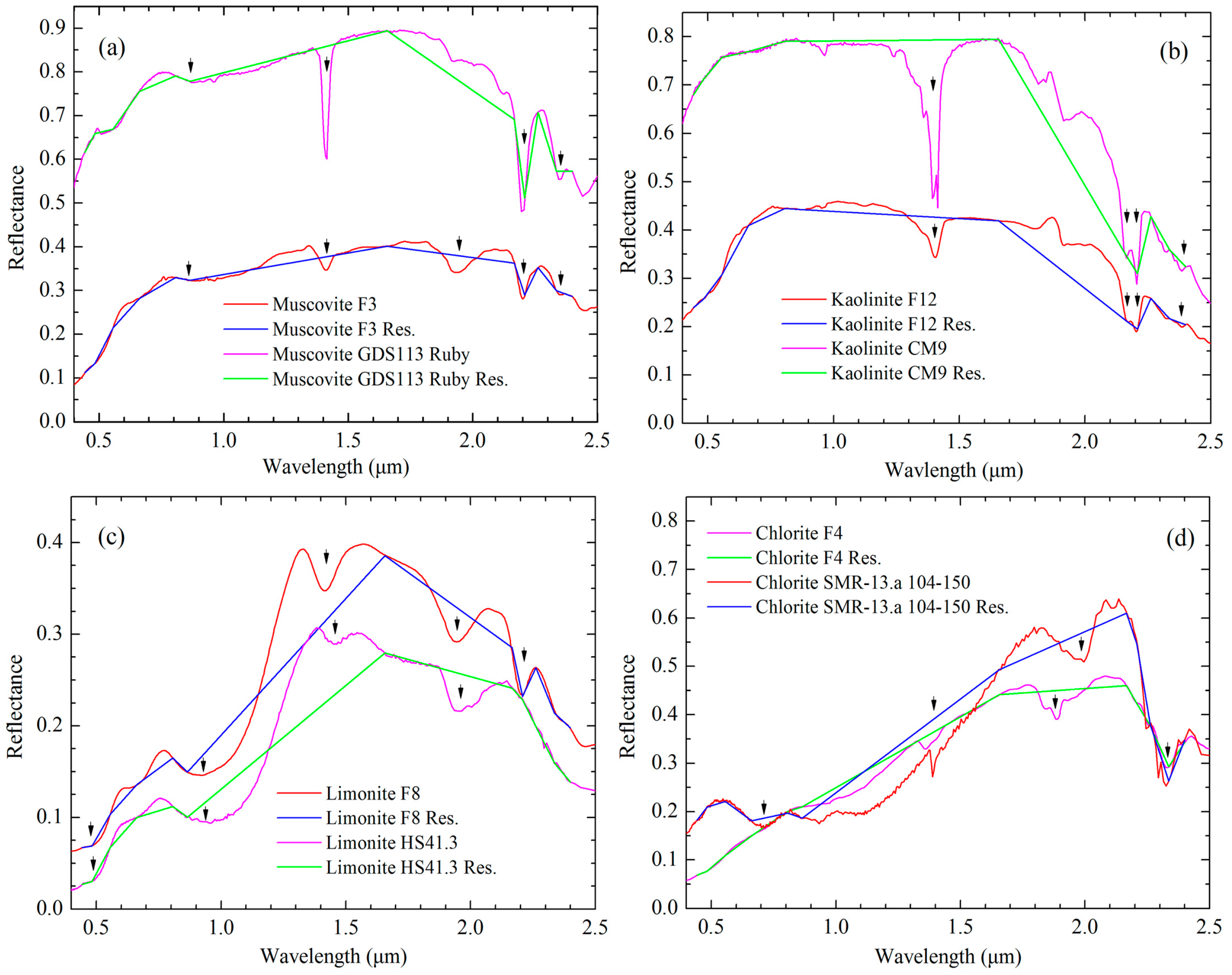 - Duke, E.F. Near infrared spectra of muscovite, Tschermak substitution and metamorphic reaction progress: Implications for remote sensing. Geology 1994, 22, 621–624. [Google Scholar] [CrossRef]