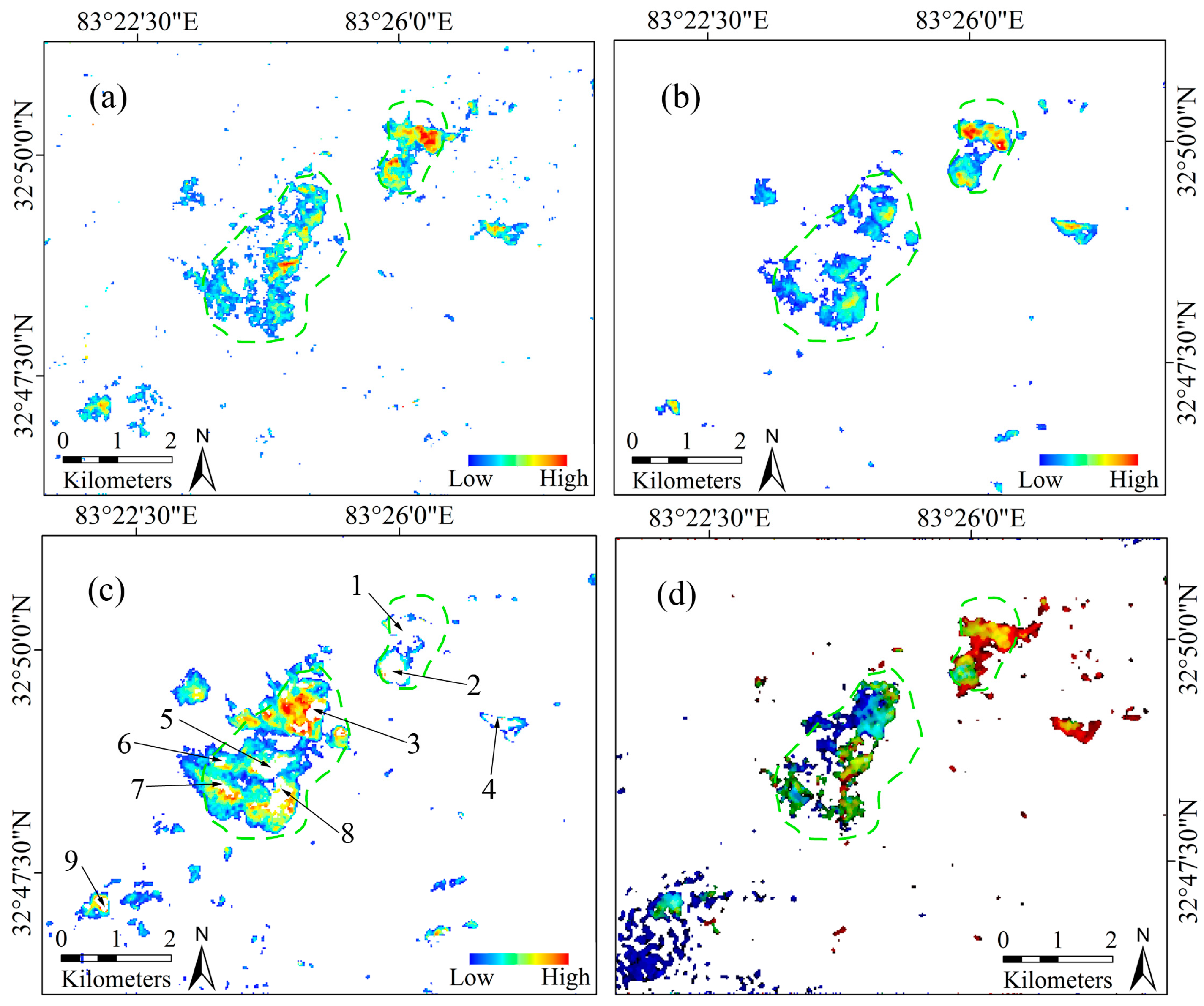 - Pour, A.B.; Hashim, M. Hydrothermal alteration mapping from Landsat-8 data, SarCheshmeh copper mining district, south-eastern Islamic Republic of Iran. J. Taibah Univ. Sci. 2015, 9, 155–166. [Google Scholar] [CrossRef]