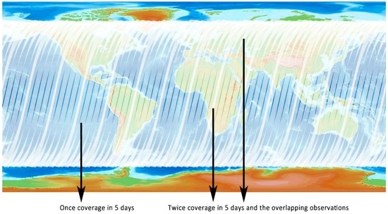 - Gómezlandesa, E.; Rango, A.; Bleiweiss, M. An algorithm to address the MODIS bowtie effect. Can. J. Remote Sens. 2004, 30, 644–650. [Google Scholar] [CrossRef]