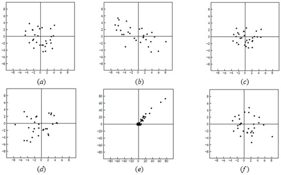 (a–f) Control point residuals. The first and second rows correspond to 1st-order and 2nd-order polynomial models, respectively. Left (a) and (d) SC, middle (b) and (e) SIFT, right (c) and (f) SC+SIFT.