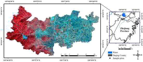 HJ-1A charge-coupled device (CCD) false-color composite image of the study area of Deqing County, Zhejiang Province, East China.