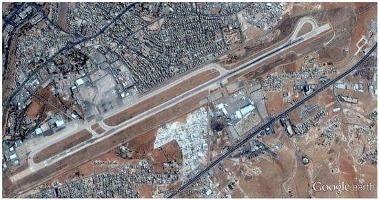 A GoogleEarth® image of runway 06/24 at the Amman Civil Airport (OJAM), Jordan (ID = 23 in Table 2).