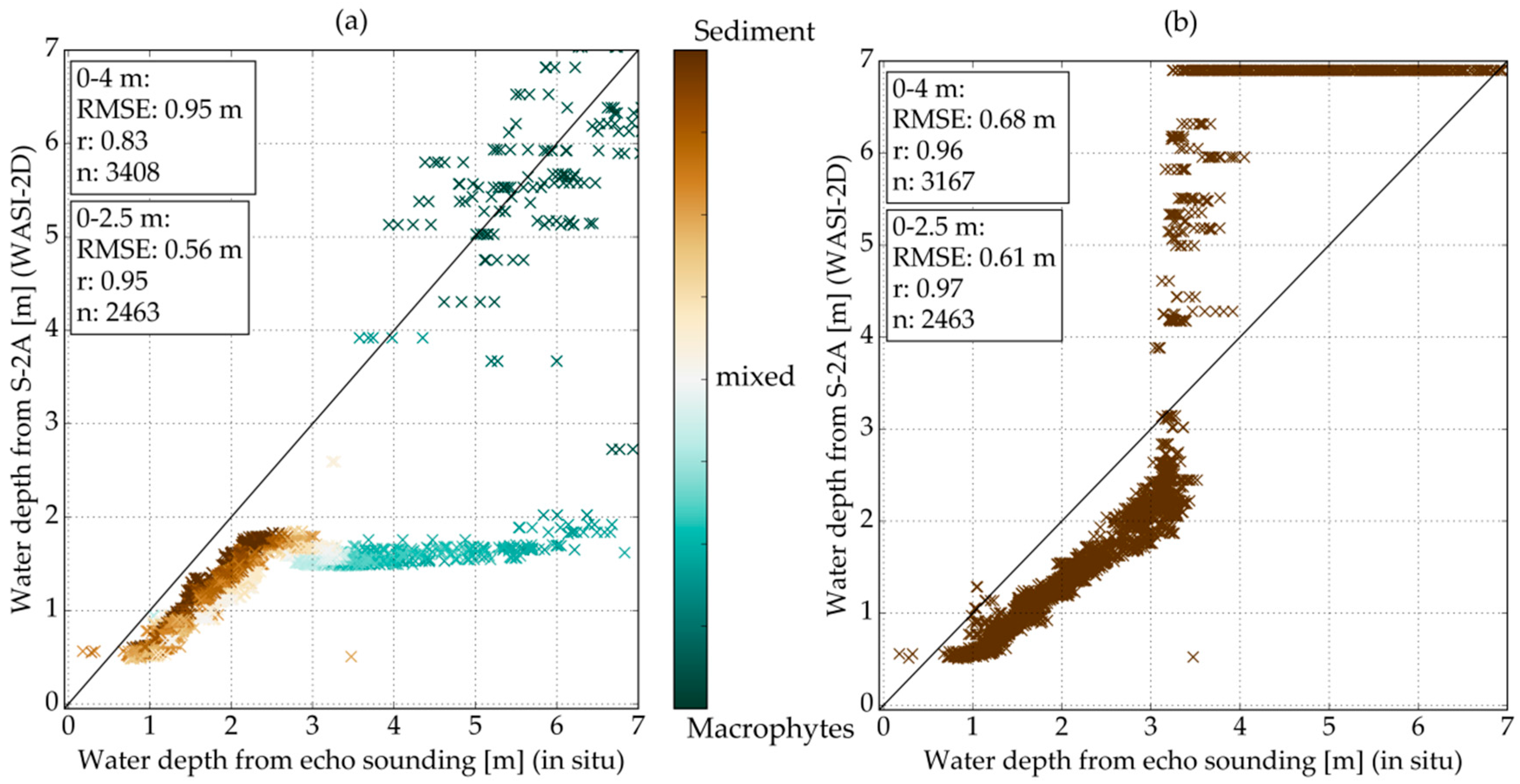 - Gege, P. A case study at Starnberger See for hyperspectral bathymetry mapping using inverse modelling. In Proceedings of the WHISPERS conference, Lausanne, Switzerland, 25–27 June 2014; pp. 1–4.