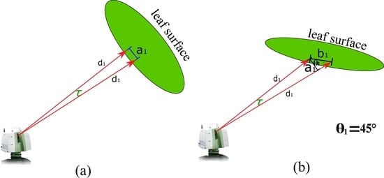- Zheng, G.; Moskal, L.M. Leaf orientation retrieval from terrestrial laser scanning (tls) data. IEEE Trans. Geosci. Remote Sens. 2012, 50, 3970–3979. [Google Scholar] [CrossRef]