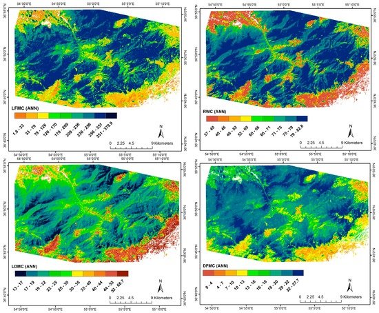 | LFMC (MODIS) | Training (ANN) | 43.4 | 31 | 26.63% | 0.70 |