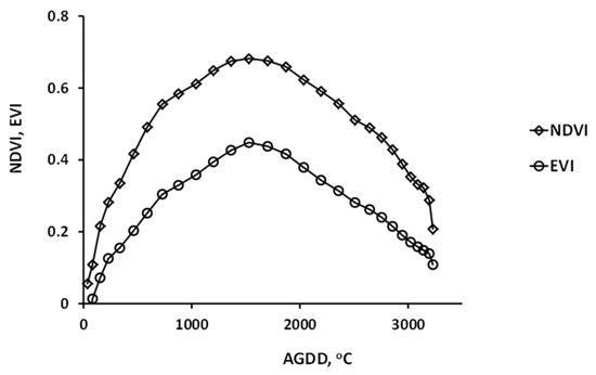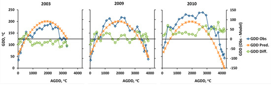 Accumulated GDD (or AGDD) was calculated from GDD for both sensors.