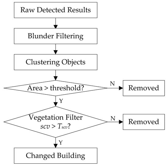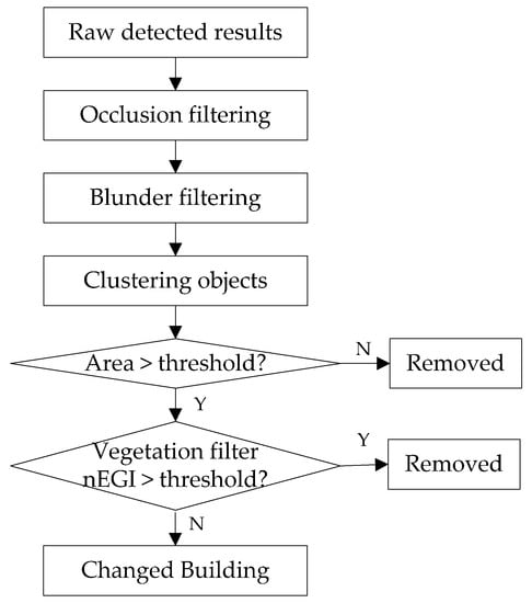 The workflow of positive building change results refinement.