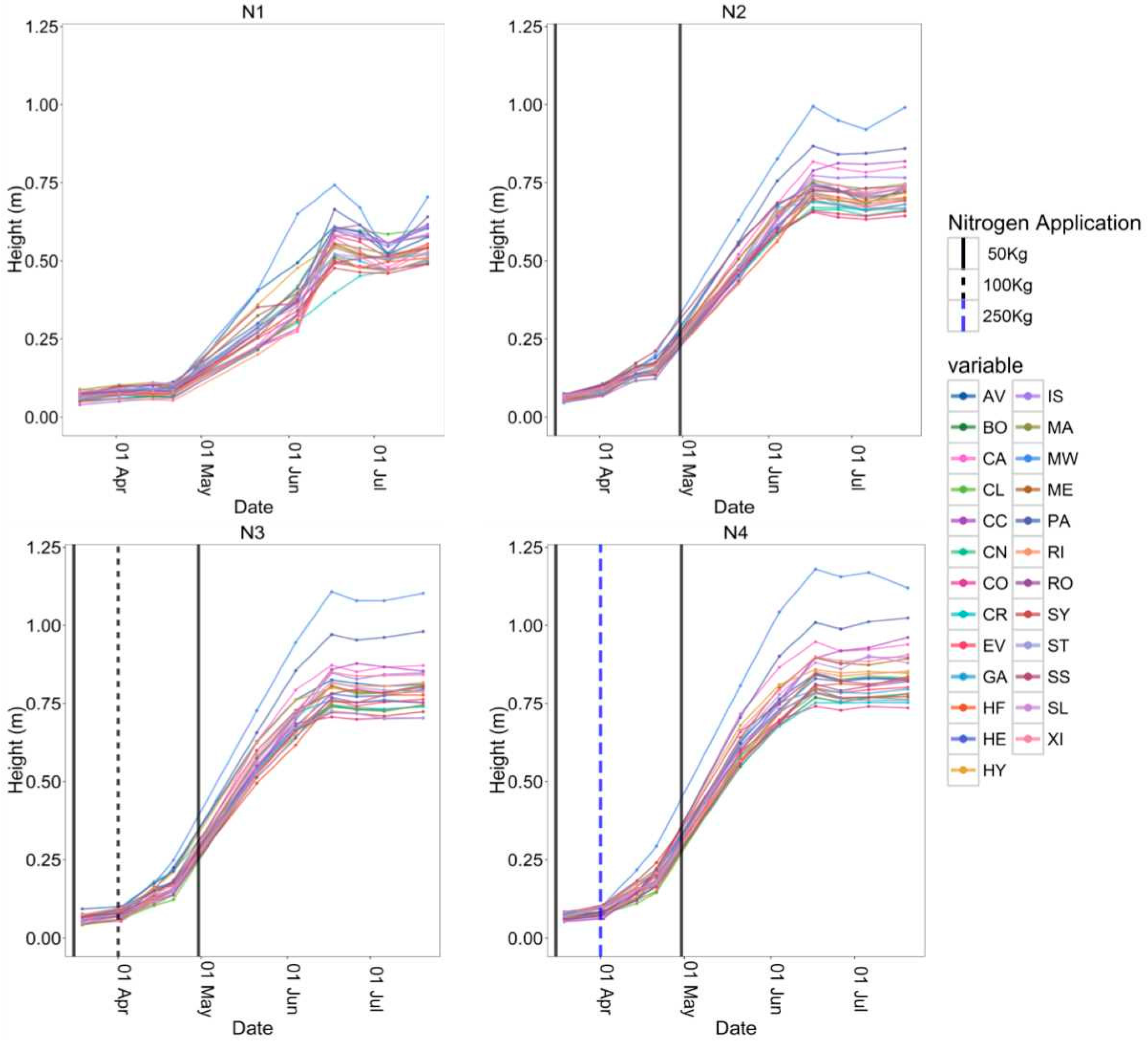 Height may be a useful indicator of yield, carbohydrate storage capacity and susceptibility to lodging [