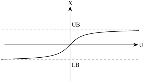 where the range of is . Figure 4 shows a plot representing the relationship between the original variable and the new one after variable transformation. From this figure, it is obvious to see that the range of has not been changed and is also ; however, the new variables are unbounded. Then, by applying this transformation to the optimization object function, the optimization problem becomes an unconstraint optimization depending on the vector of variables .
