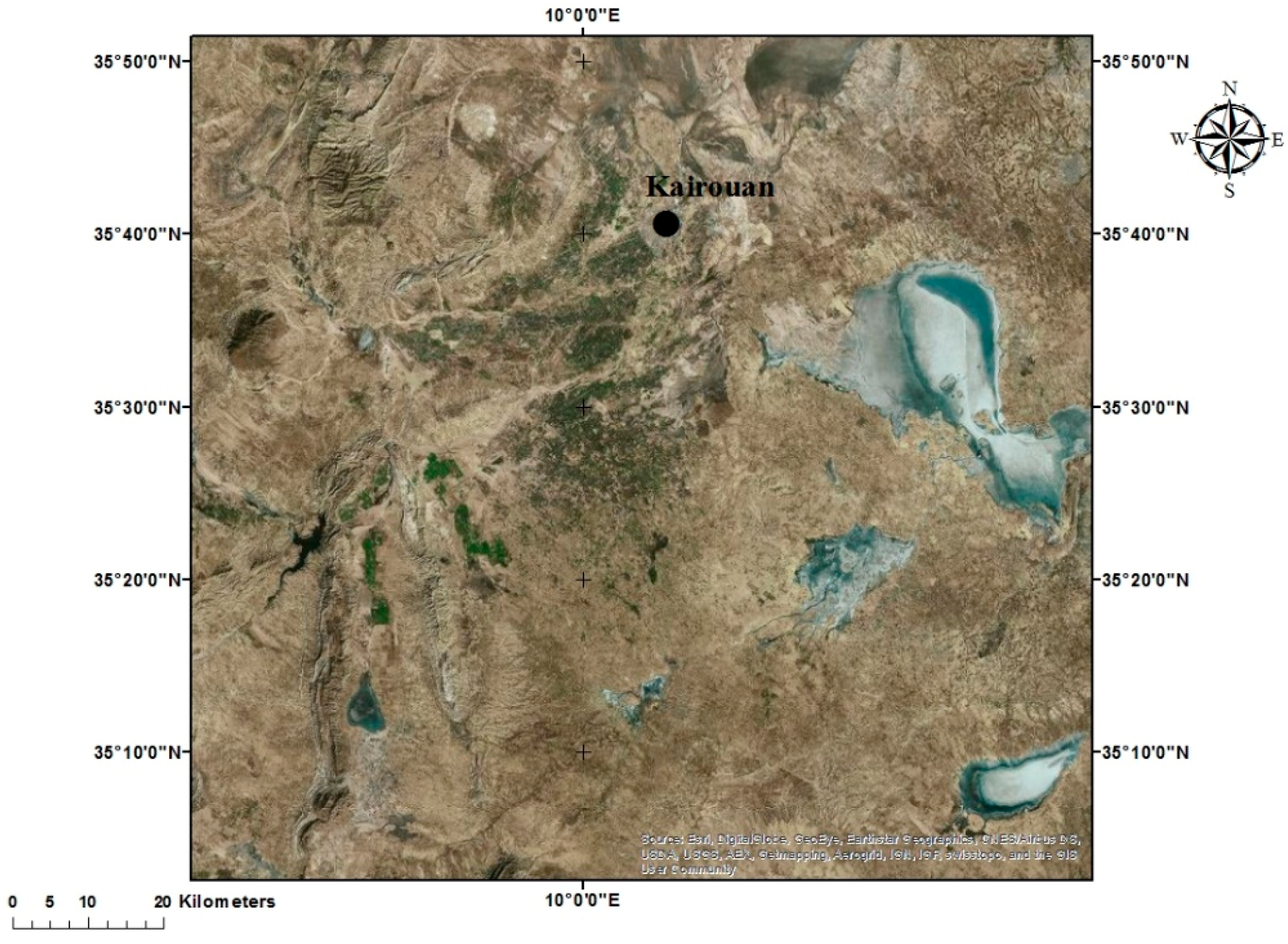 - Shabou, M.; Zribi, M.; Lili-chabaane, Z.; Amri, R.; Selmi, A. Evolution de l’occupation du sol sur le site semi-aride de Merguellil (Tunisie centrale), en utilisant des données optiques de hautes résolutions (SPOT/HRV, Landsat). In Proceedings of the International Workshop: Water Resources in Kairouan Plain: Natural Constraints and Social Developments, Tunis, Tunisia, 16–17 November 2011.