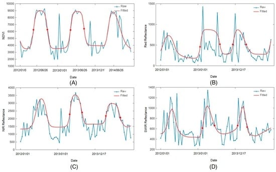 - Jonsson, P.; Eklundh, L. Seasonality extraction by function fitting to time-series of satellite sensor data. IEEE Trans. Geosci. Remote 2002, 40, 1824–1832. [Google Scholar] [CrossRef]