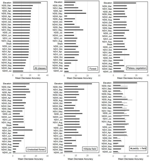 4.2. Temporal Indices of Land Cover Classes and Relevant Variables in the RF Classification