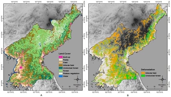- Land-Cover and Land-Use Change Program (LCLUC). Deforestation in North Korea. Available online: http://lcluc.umd.edu/hotspot/deforestation-north-korea (accessed on 2 January 2016).
