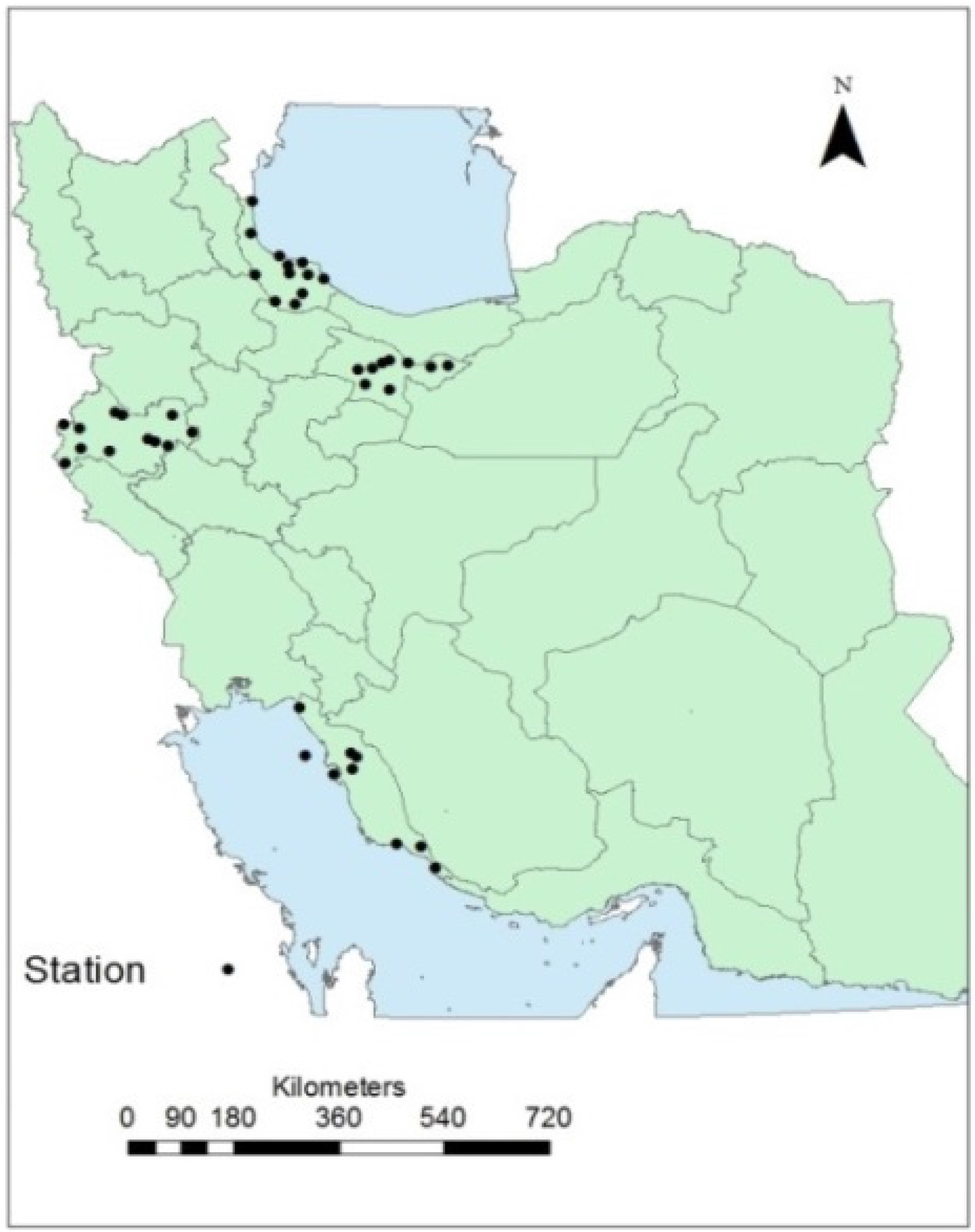 The satellite products were compared with the measured precipitation data of 43 meteorological synoptic stations (Figure 3) at daily, monthly and seasonal time scales for different climate conditions in Iran. At the time of data analysis, we had access only to this number of stations.