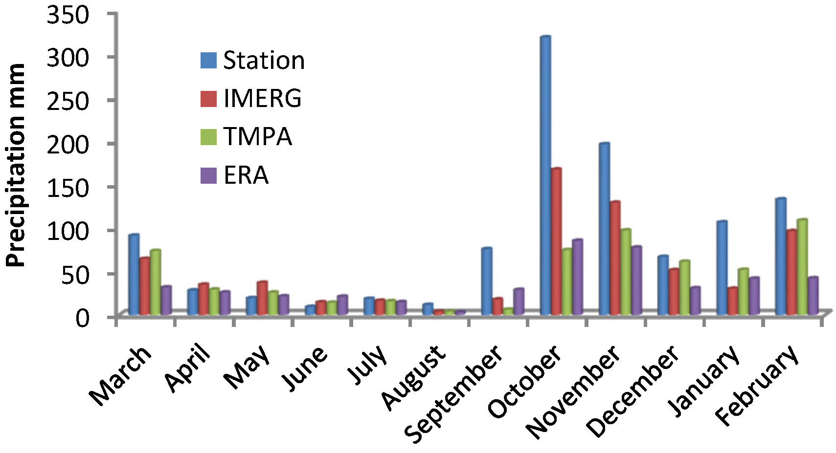 The primary requirement in precipitation measurement is to know where and how much precipitation is falling at any given time. Such precipitation characteristics may be determined through traditional ground-based rain-gauges and/or advanced satellite precipitation products. Another important aspect deals with the duration of precipitation. In this study, accumulation products have been evaluated daily (derived from accumulation of half-hourly and 3-hourly basis for IMERG, TMPA-3B42 respectively), monthly and seasonally as well.