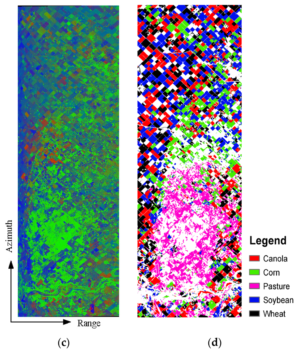 - Cloude, S.R.; Pottier, E. An entropy based classification scheme for land applications of polarimetric SAR. IEEE Trans. Geosci. Remote Sens. 1997, 35, 68–78. [Google Scholar] [CrossRef]