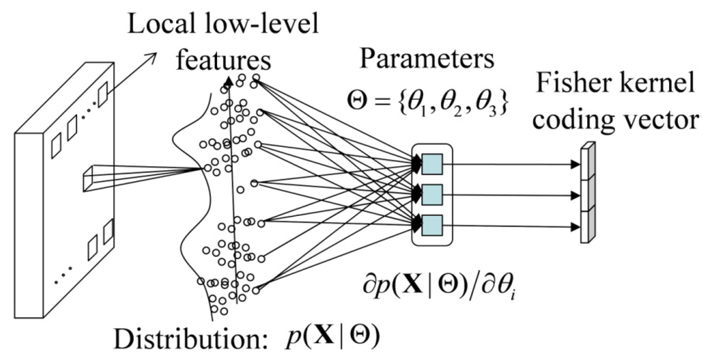 Under the FK coding framework, a probabilistic generative model, such as the Gaussian mixture model (GMM), is employed to estimate the distribution of the low-level features, and the low-level features are then converted into mid-level features given the distribution of the low-level features by the gradient of the log-likelihood, which is called the FK coding procedure. The parameter space learned by the probabilistic generative model can be functionally viewed as the codebook of the low-level features. By converting the low-level features into the parameter space, the FK coding is able to preserve a lot of details of the low-level features in the coding process, which leads to a compact representation and a reduction in the size of the codebook.