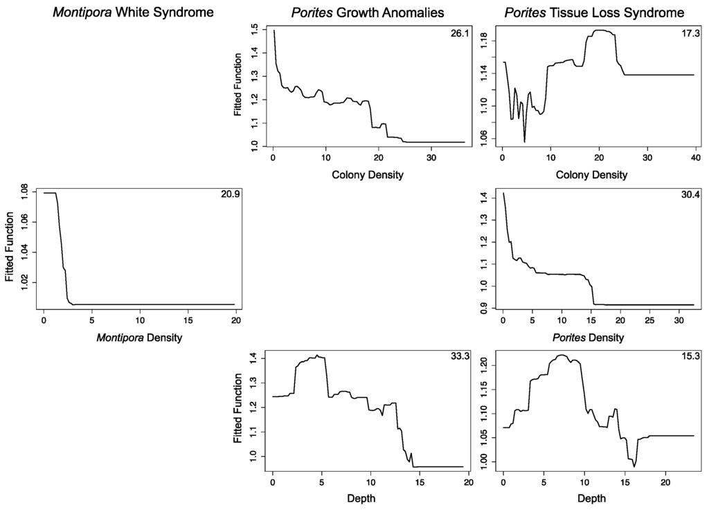 - Williams, G.J.; Aeby, G.S.; Cowie, R.O.M.; Davy, S.K. Predictive modeling of coral disease distribution within a reef system. PLoS ONE 2010, 5, e9264. [Google Scholar] [CrossRef] [PubMed]