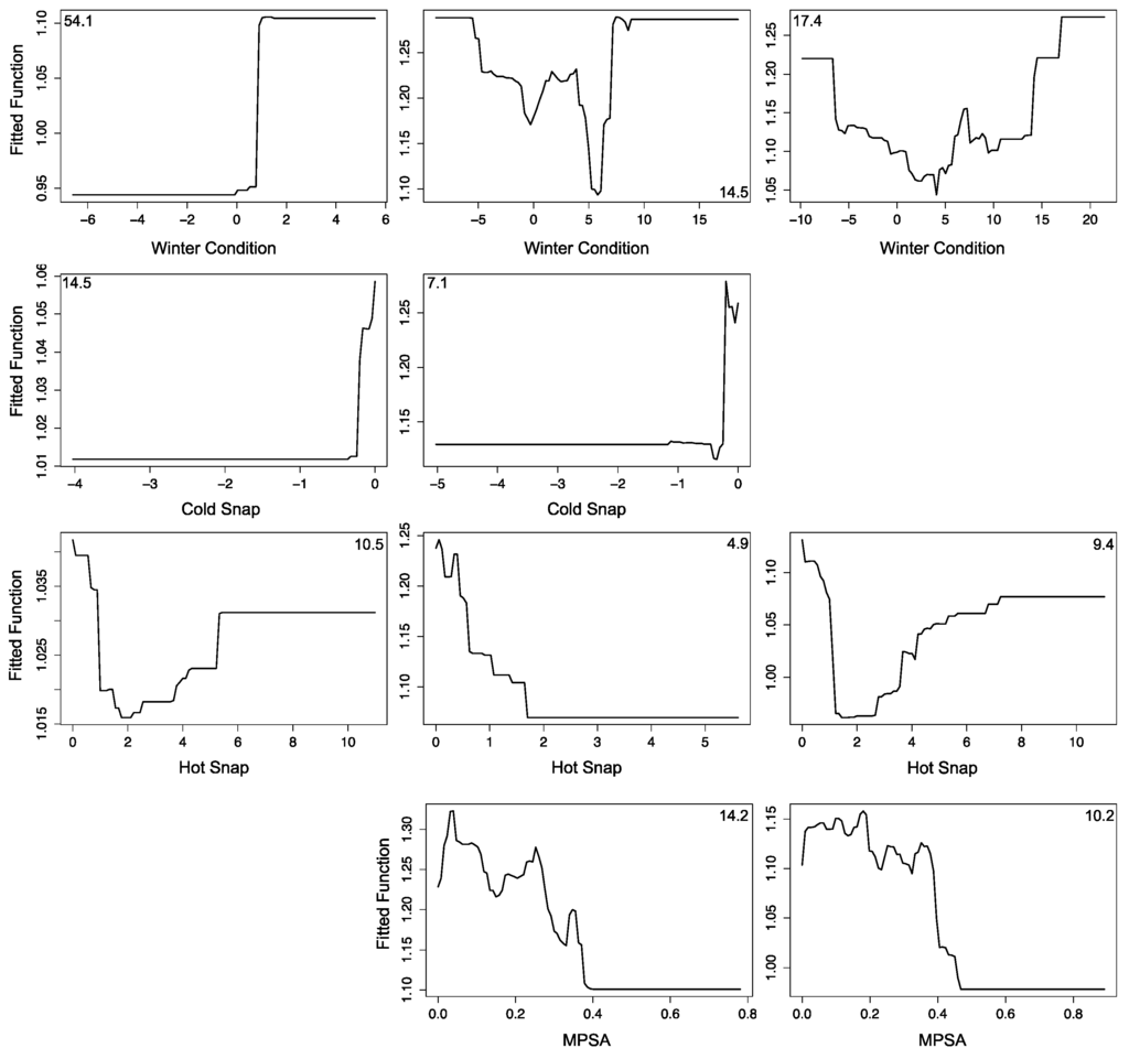 | Winter Condition | Abiotic | Accumulation of positive and negative thermal anomalies; °C-weeks | −10.162 | 21.465 |