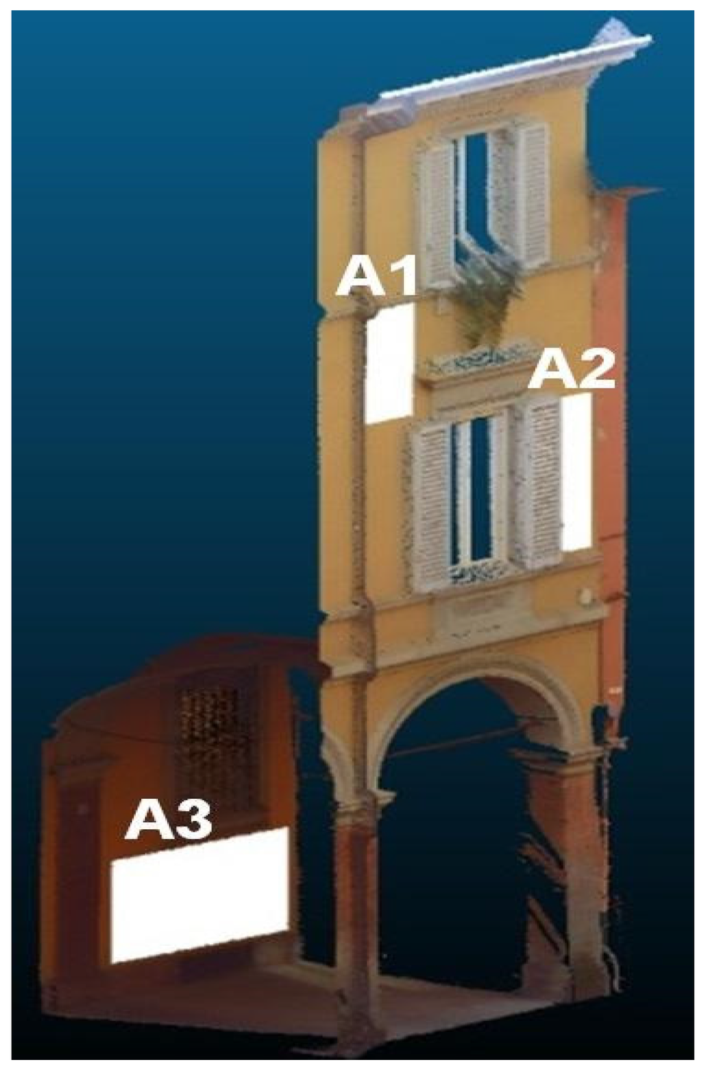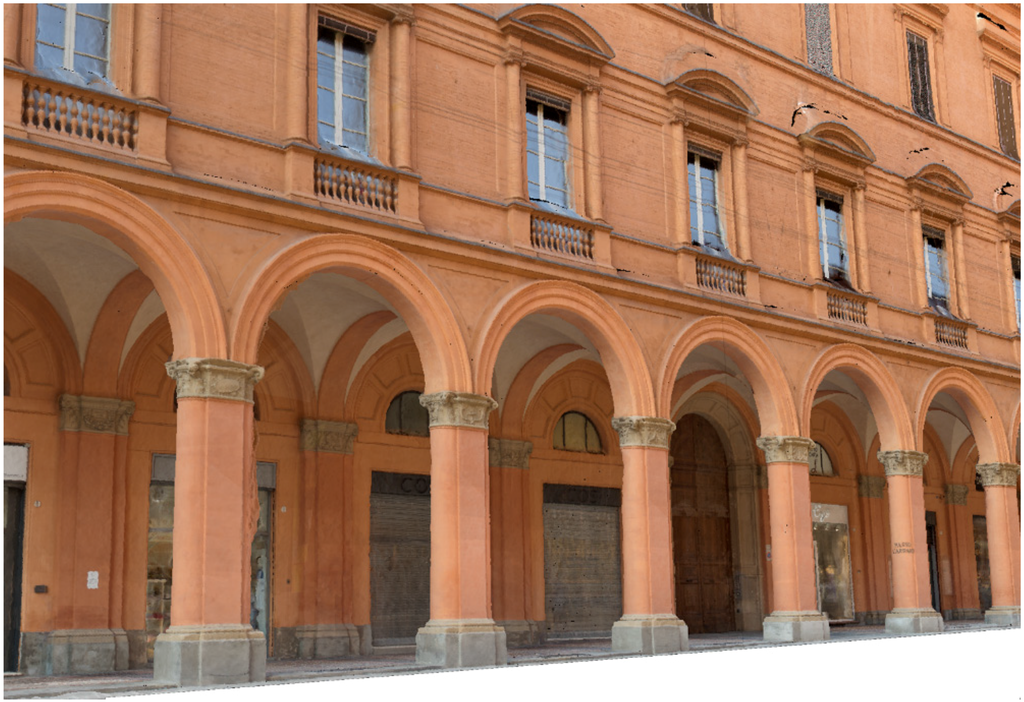 Example of dense 3D point cloud of a portico obtained with the presented photogrammetric methodology based on an advanced pre-processing pipeline.
