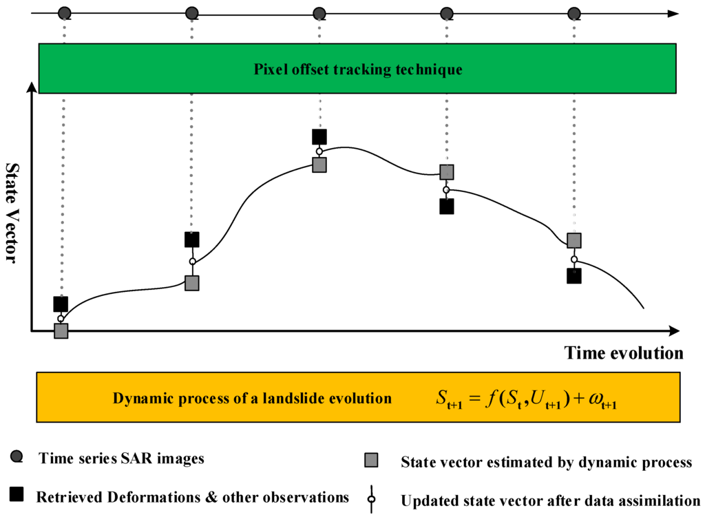 Landslide evolution can be considered as a differential function that temporally integrates dynamic states and model parameters under a driving force, such as rainfall or the reservoir level. The functions for a landslide process can be denoted as a nonlinear stochastic process,