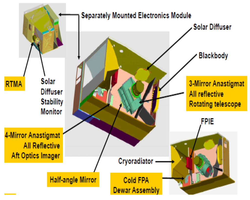 - Barrie, J.D.; Fugua, P.D.; Meshishnek, M.J.; Ciofalo, M.R.; Chu, C.T.; Chaney, J.A.; Moision, R.M.; Graziani, L. Root cause determination of on-orbit degradation of the VIIRS rotating telescope assembly. Proc. SPIE 2012, 8510, 8510B. [Google Scholar]