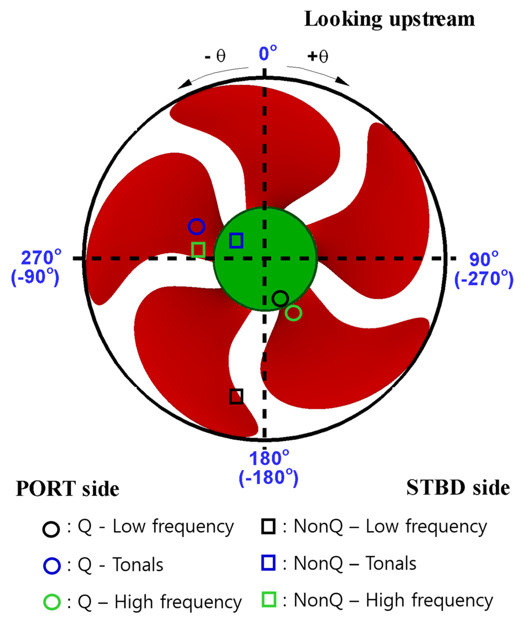 - Kim, D.; Lee, K.; Seong, W. Non-cavitating propeller noise modeling and inversion. J. Sound Vib. 2014, 333, 6424–6437. [Google Scholar] [CrossRef]