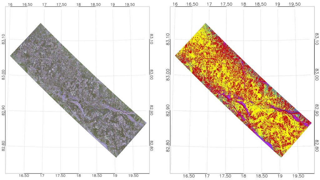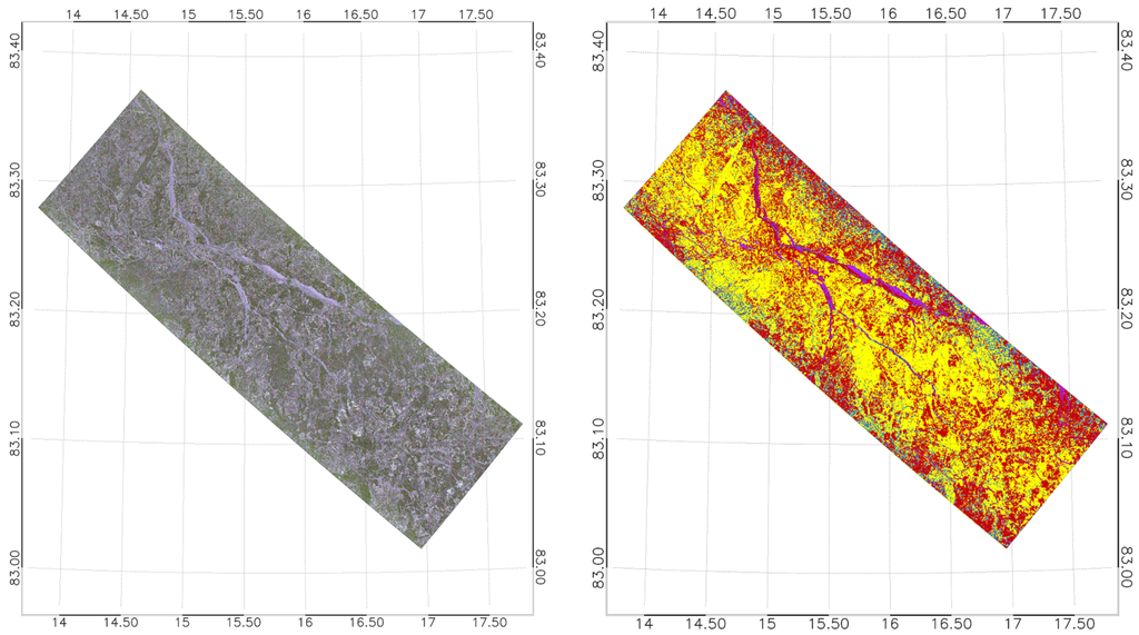 - Cloude, S.R.; Pottier, E. An entropy based classification scheme for land applications of polarimetric SAR. IEEE Trans. Geosci. Remote Sens. 1997, 35, 68–78. [Google Scholar] [CrossRef]